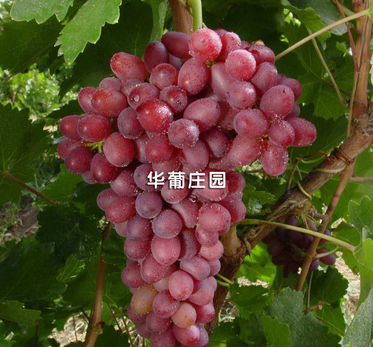 克瑞森:是美國加州繼紅提葡萄之后推出的又一無核葡萄品種。1997年由農(nóng)業(yè)部葡萄新品種項目課題組引進(jìn)我國,經(jīng)過4年在國內(nèi)試種,我國葡萄專家在綜合考察其生長狀況、果實性狀和市場前景后認(rèn)為,該品種是較有發(fā)展?jié)摿Φ臒o核葡萄品種。果實亮紅色,充分成熟后為紫紅色,上有較厚白色果霜,橢圓形。果穗中等大,有歧肩,圓錐形。平均穗重500克。果肉淺黃色,半透明肉質(zhì),果肉較硬,果皮中等厚,不易與果肉分離,味甜,低酸,品質(zhì)極佳。 |